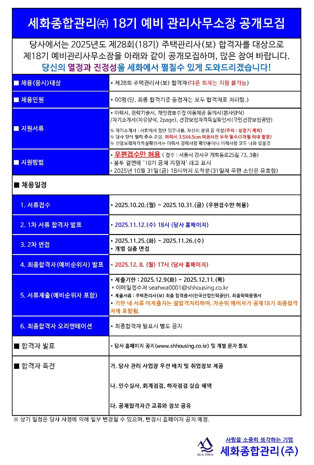 세화종합관리 ㈜ 18기 예비 관리사무소장 공개모집