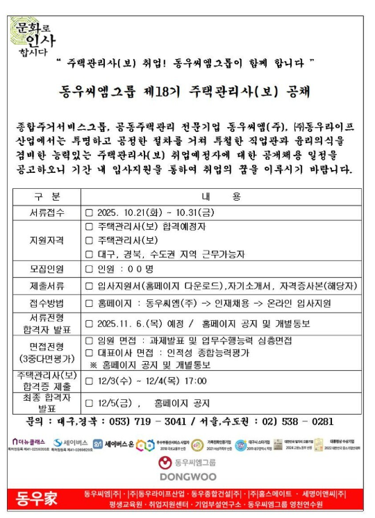 동우씨엠그룹 예비관리사무소장 공개채용안내